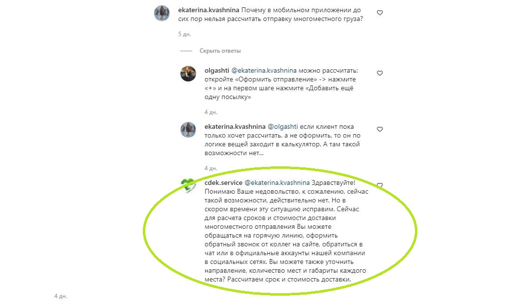 Как только вы поймёте, что претензия по делу, можете перенести общение в «личку», а в ветке комментариев указать, что ответили в директ. Не предлагайте клиенту повторить свою жалобу на другой платформе (написать электронное письмо, заполнить специальную форму на сайте и т. д.). Решайте проблему здесь и сейчас.